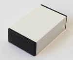 Алуминиева кутия с платмасови странични капаци. Външни размери 66x40x20mm.